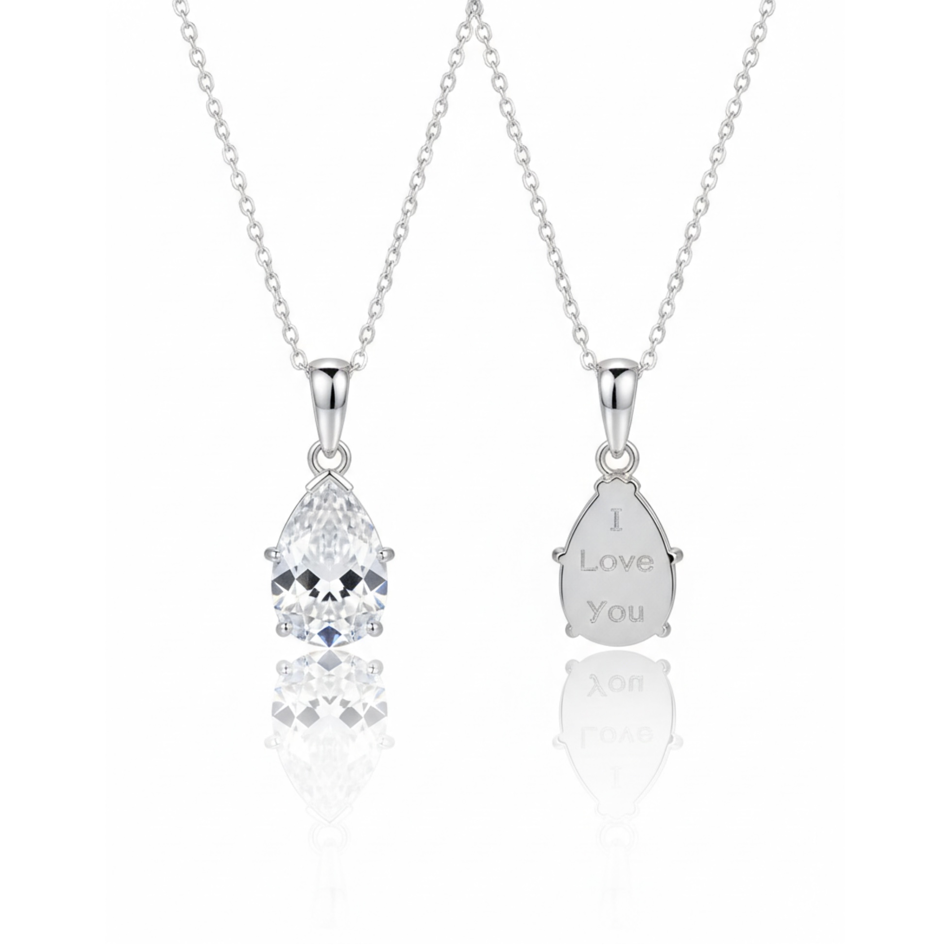 A delicate clear crystal necklace in sterling silver, engraved with a secret message — “love you” on the back. A meaningful, minimalist piece that says it all.