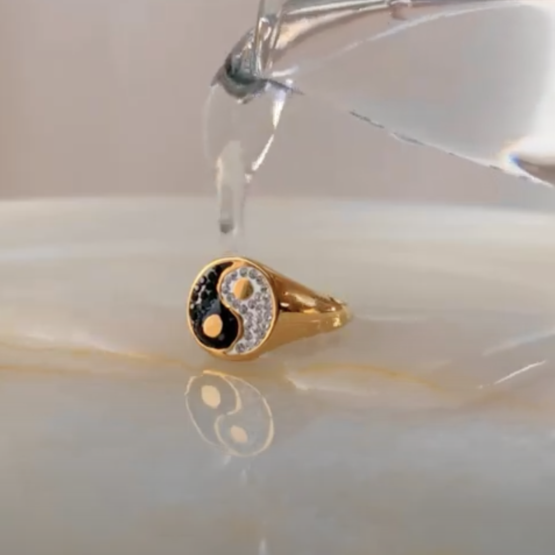 Balanced in both form and meaning, this gold-plated stainless steel ring carries the yin yang symbol — a bold yet minimal reminder of harmony and contrast.